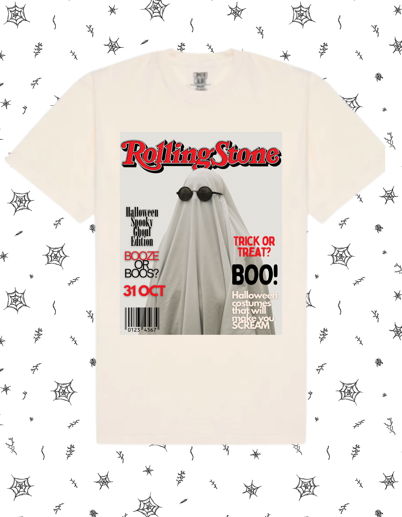 A killer twist on an icon — this tee reimagines a Ghost as the star of a Rolling Stone cover. Bold, edgy, and a little sinister, it’s the perfect statement piece for horror fans who like their fashion with attitude